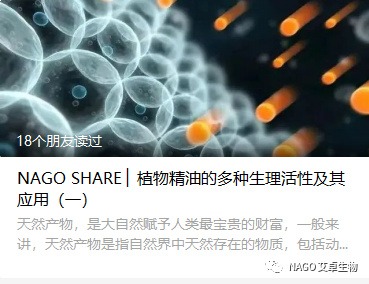 在第一期《NAGO SHARE ▏植物精油的多種生理活性及其應(yīng)用(一)》中,我們向大家介紹了天然產(chǎn)物中植物精油的使用歷史、特性及多樣的生理活性,其中我們著重介紹了植物精油優(yōu)秀的抗氧化性能。在本期文章中,我們將繼續(xù)深入探討植物精油所具有的其它突出生理活性。